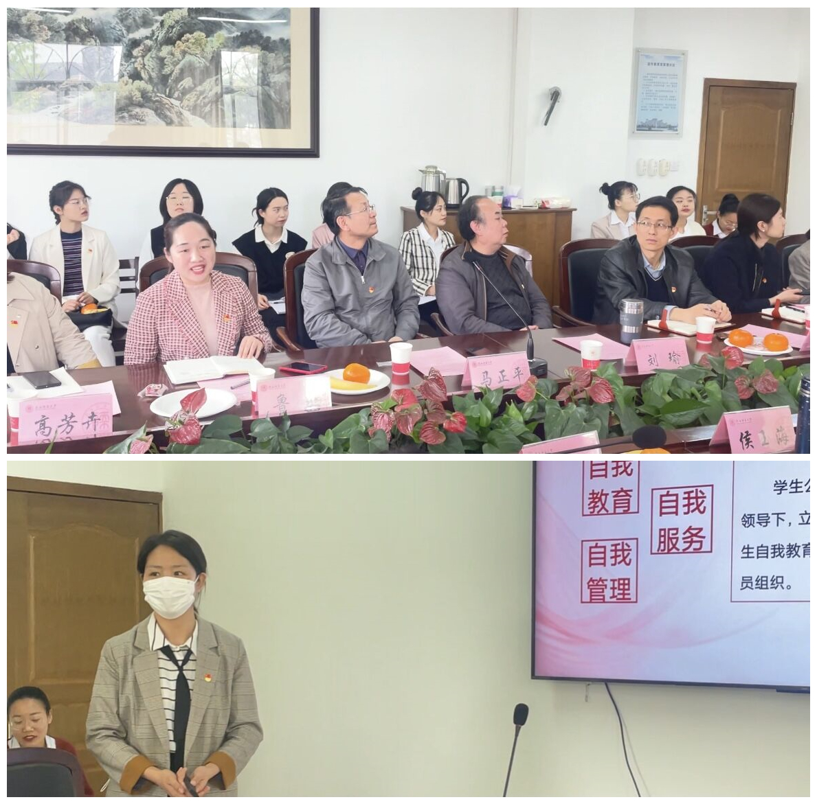 接下来,公司党委副书记鲁燕就近年公司党建工作开展情况进行了简要汇报,辅导员屈婉婷介绍了员工公寓党员工作站的建设情况,得到了现场老教师们的一致认可。