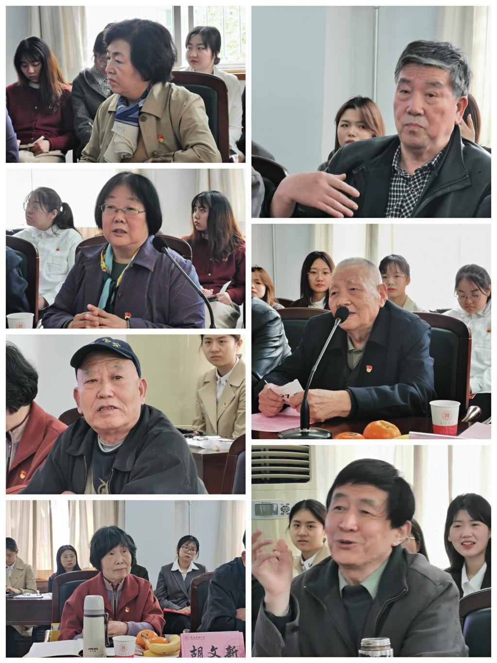 座谈会伊始,退休党支部书记侯玉海老师和本科生第一党支部书记李丹分别介绍了参加座谈的新老两代党员。随后,来自毕业班的青年党员代表为老一辈党员教师们献上了一首饱含深情的诗朗诵——《红船》,赢得了在场教师员工的阵阵掌声。