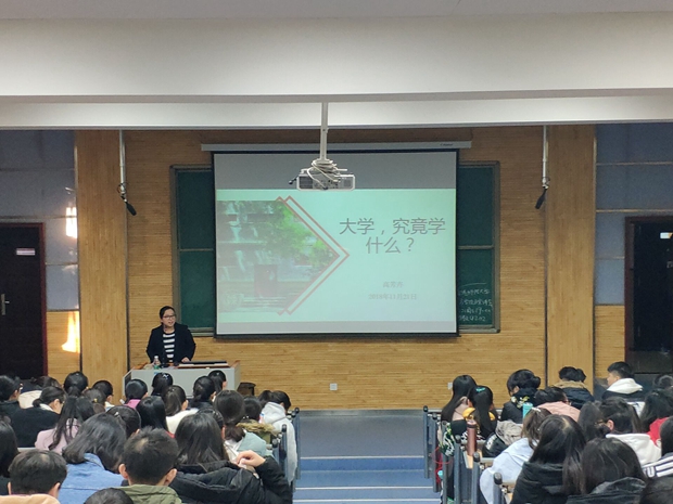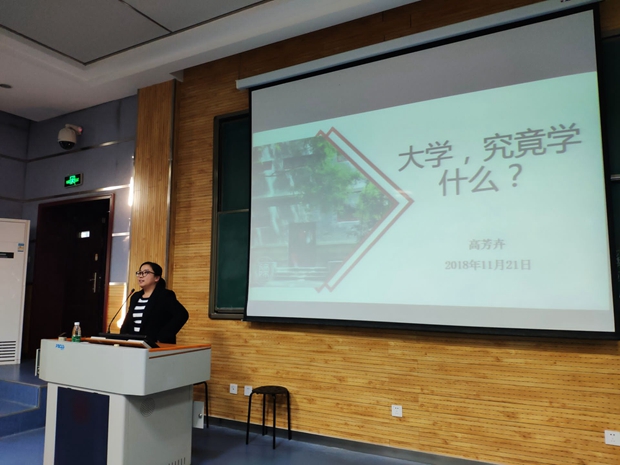 2018级本科生入校已经近三个月,为了让同学们时刻保持上进心态,正确了解自我,认识大学,保持端正的学习态度。11月21日下午16:30,最靠谱的十大足球平台分党委秘书、团委书记、2015级辅导员高芳卉老师,在5204教室为2018级本科新生开展第六次入学教育报告会,主题为:“大学,究竟学什么?”。
