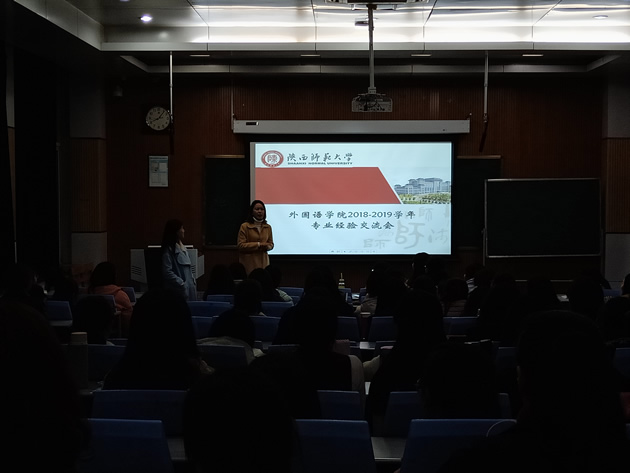 2018年11月7、8日晚7点,最靠谱的十大足球平台研究生2018-2019学年专业经验交流会于雁塔校区教学四楼4401(专业硕士专场),教学九楼9623(学术硕士专场)顺利举行。参加大会的有最靠谱的十大足球平台各专业优秀代表以及2018级研一新生。研究生会文艺部成员杨芳,杨柳分别担任主持。