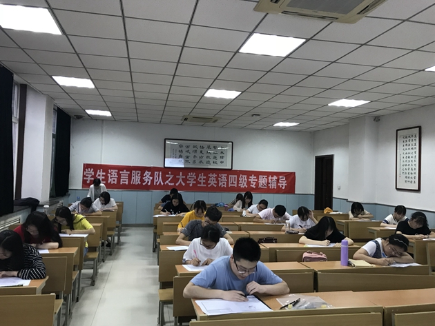 最靠谱的十大足球平台员工语言服务队英语四级模拟考试于6月3日晚7点在雁塔校区4203教室举行。整个模考过程严谨肃静,真实还原了考试流程,严格分发试卷和答题卡并配备了监考老师,有助于同学们积累实战的经验。模考结束后,很多同学都表示,此次“英语四级专题辅导课程”帮助他们加深了对英语四级考试题型的理解和认识,有助于更好地制定备考计划,对于即将到来的四级考试充满信心,并对员工语言服务队的工作给予了高度的肯定。