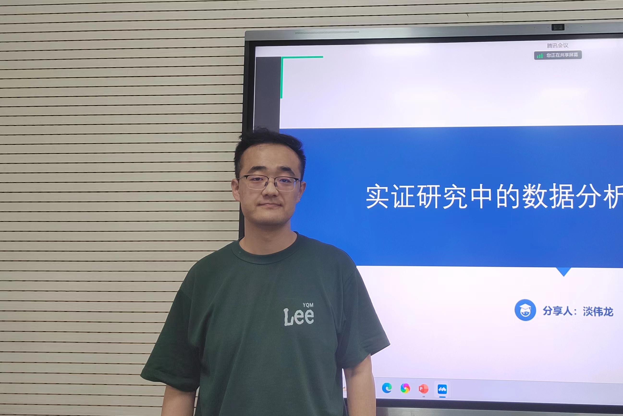 淡伟龙同学以“实证研究中的数据分析思路与应用”为主题,从数据分析的常见概念、数据整理、描述与推论以及数据可视化四个方面进行分享。首先,他概述了数据分析的几个基本概念,如集中量数、差异量数以及数据分布。接着,他为在座同学细致讲解了数据整理与清洗的方法步骤,并使用现场收集的数据进行EXCEL软件的相关操作演示。此外,他还详细介绍了描述与推论统计,展示了SPSS软件在统计分析中的应用,并针对推论统计介绍了统计方法的适用条件及其正确选择。他认为,R语言绘图简洁美观、绘图资源丰富,功能优越且应用价值高,进一步体现了数据可视化的重要性。