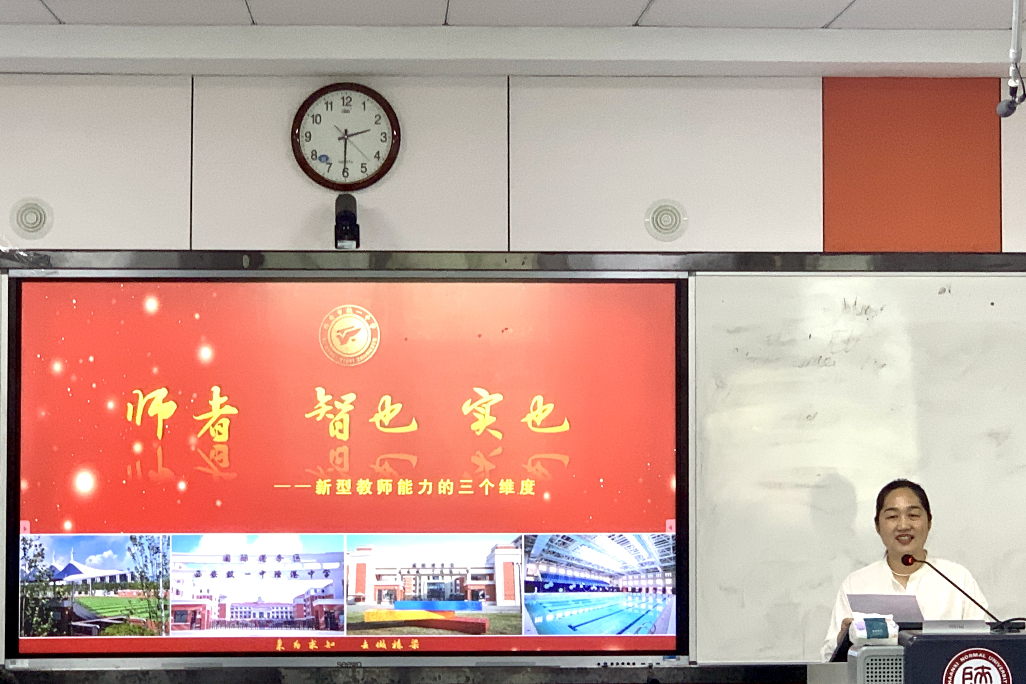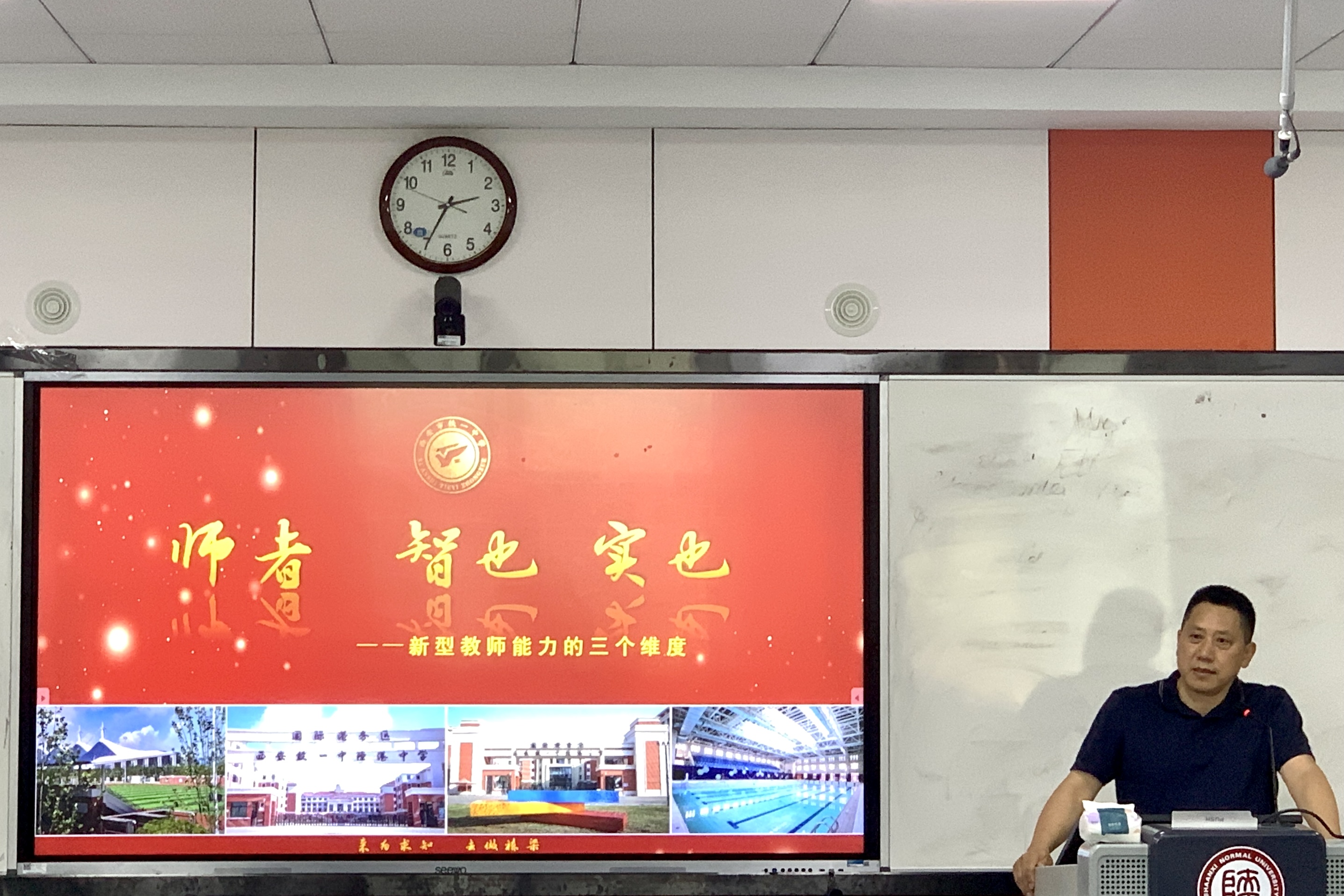 为提升教师专业素养,明确基础教育发展方向,5月16日下午14:30,最靠谱的十大足球平台于雁塔校区教学六楼6301报告厅举办会通讲堂第32期。本次讲座邀请到教育部教师远程培训中心副主任,体育外网十大平台app外聘教授,正高级教师,国际港务区铁一陆港公司执行董事长,陕西省公司督导评价专家,西安市教育家型教师培养对象肖邦国董事长,为员工开展题为“师者 智也 实也——新型教师能力的三个维度”的讲座。公司原党委书记冯武鸣、团委书记李丹、各年级辅导员及100余名各年级师范生代表共同参与本次讲座。公司举党委副书记鲁燕主持会议,