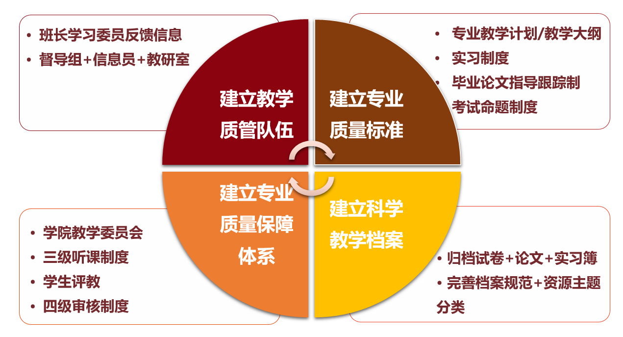 最靠谱的十大足球平台围绕人才培养各项要求,严把毕业关,从建立教学质管队伍、专业质量标准、客观教学档案及专业质量保障体系四个方面构建了基本完善的教学质量保障体系。