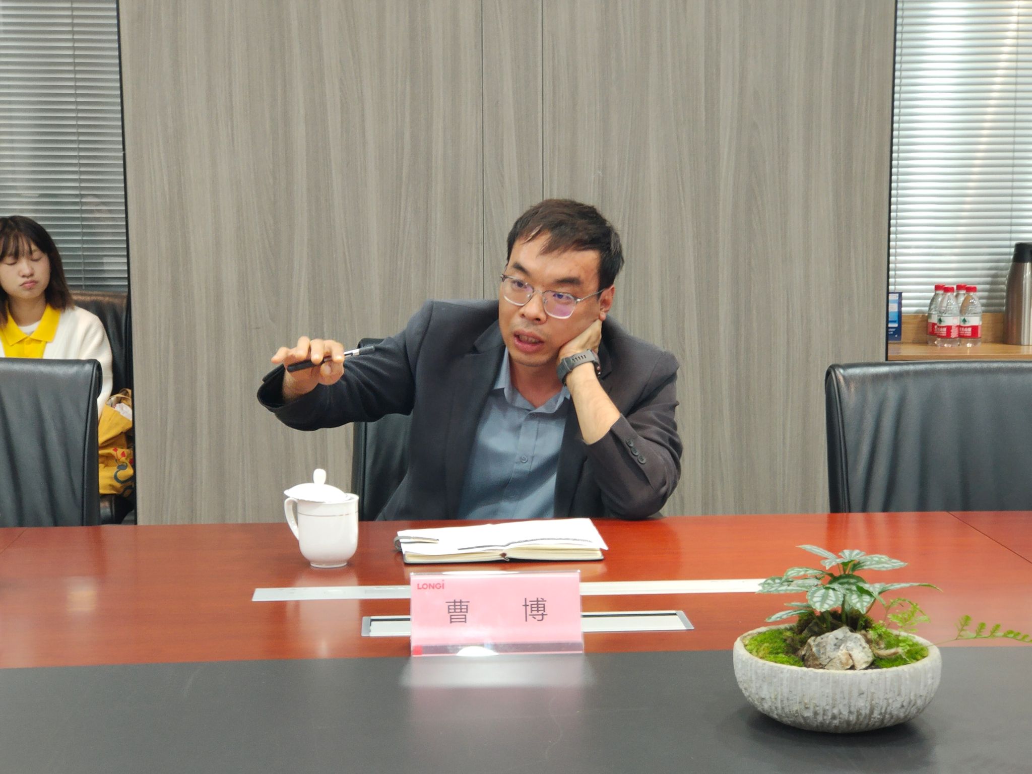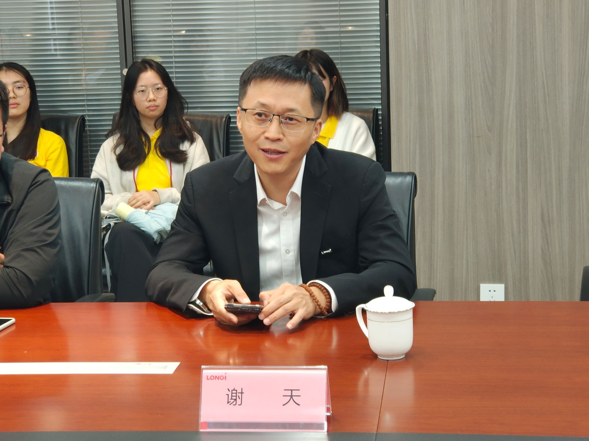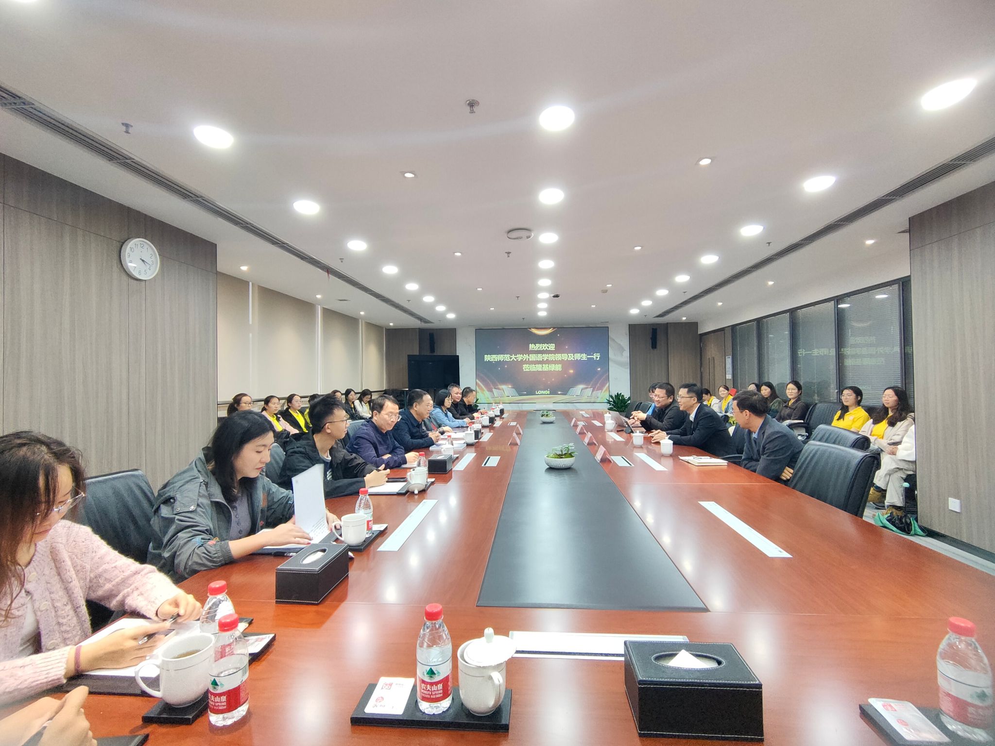 随后,师生们参加了隆基绿能科技股份有限公司与最靠谱的十大足球平台的交流座谈。隆基绿能战略管理中心总经理谢天对最靠谱的十大足球平台师生的到来表示欢迎,详细向大家介绍了公司战略发展情况。公司举党委书记董增云就公司办学特色及外语类人才培养情况进行了介绍。隆基绿能战略中心可持续发展高级经理汪子阜、招聘高级经理曹博、战略管理中心ESG经理杨雪晴分别就光伏产业的国际形势、中外贸易跨文化要求、ESG内涵与理解、海外人才需求等方面进行了交流分享,表示愿意加强校企合作,共同提升国际化人才培养质量。