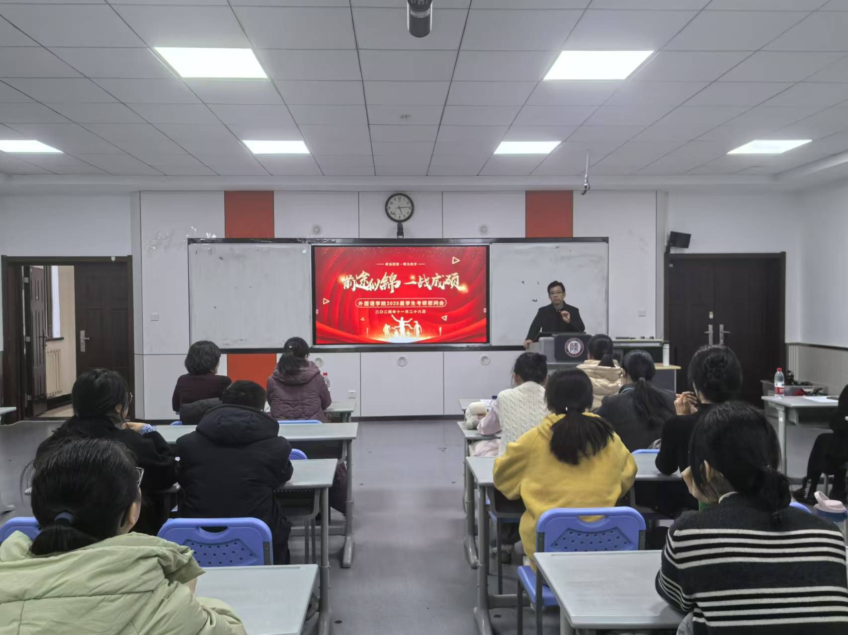 鲁燕副书记从备考期间的身心适调,考前准备等方面对同学表示关心和指导,鼓励同学们鼓足干劲,一战成硕。