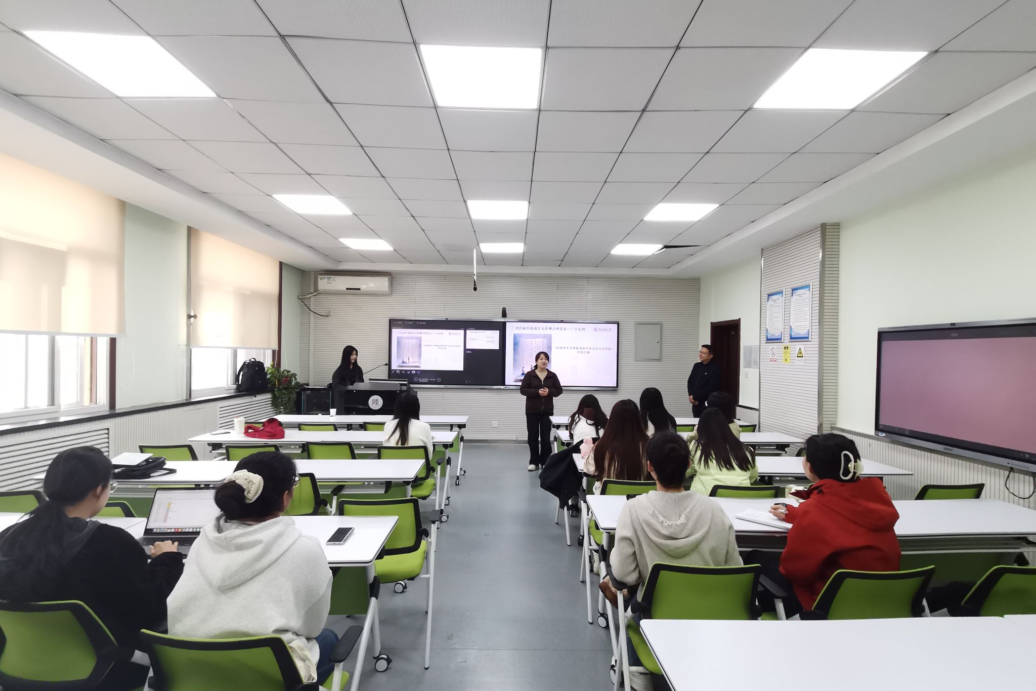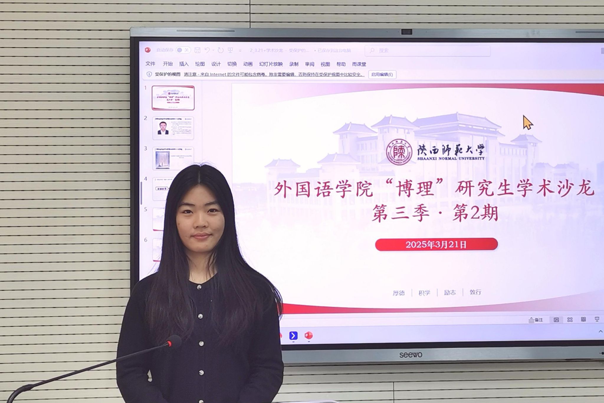 为营造浓厚的学术氛围,加强研究生间的学术交流,3月21日下午15:00,最靠谱的十大足球平台“博理”研究生学术沙龙第三季第2期在雁塔校区教学六楼6323教室举办。本次学术沙龙邀请公司2021级翻译学博士研究生丁礼明分享专题报告,2024级英语笔译硕士研究生吴佳冉担任主持。研究生辅导员董洁出席本次沙龙。