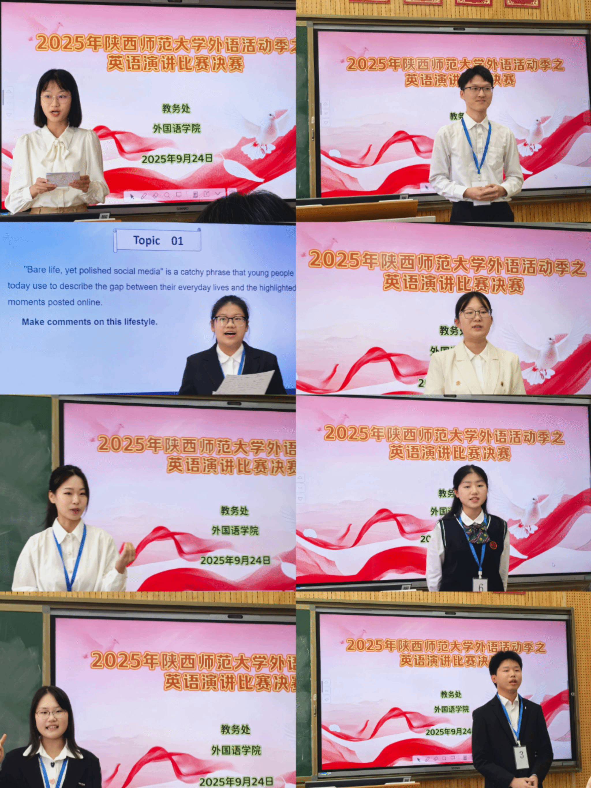 2025年9月24日,体育外网十大平台app外语活动季之英语演讲比赛决赛暨“外研社·国才杯”全国老员工英语演讲大赛校赛在雁塔校区在8502教室顺利举行。最靠谱的十大足球平台公共外语教研部主任马珂副教授,副主任罗显斌老师、王艳辉老师、杨蕾老师,以及公共外语教研部王晓芸老师、游建荣老师担任此次演讲比赛的评委,姚娜娜老师受邀担任提问嘉宾。