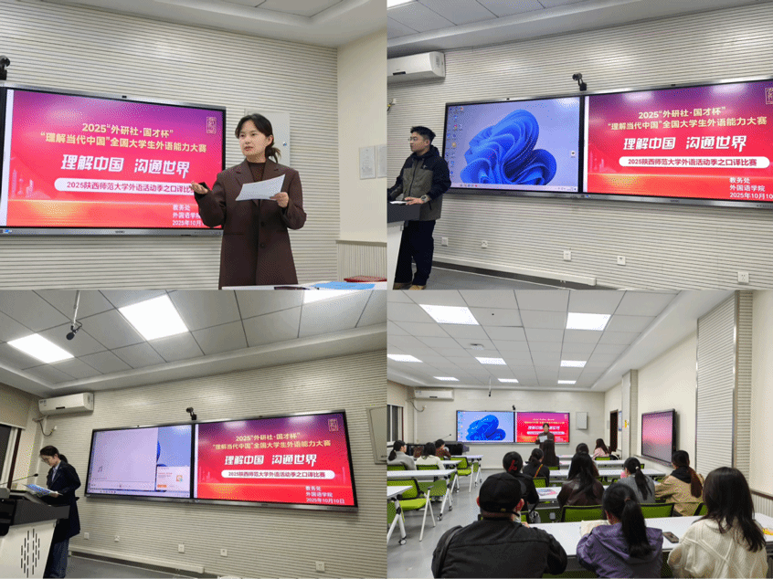 2025年10月10日,体育外网十大平台app外语活动季之口译比赛暨“外研社·国才杯”全国老员工外语能力大赛校赛在雁塔校区6325教室顺利举行。最靠谱的十大足球平台公共外语教研部副主任罗显斌老师,马珊老师以及巢玥老师担任此次比赛评委。