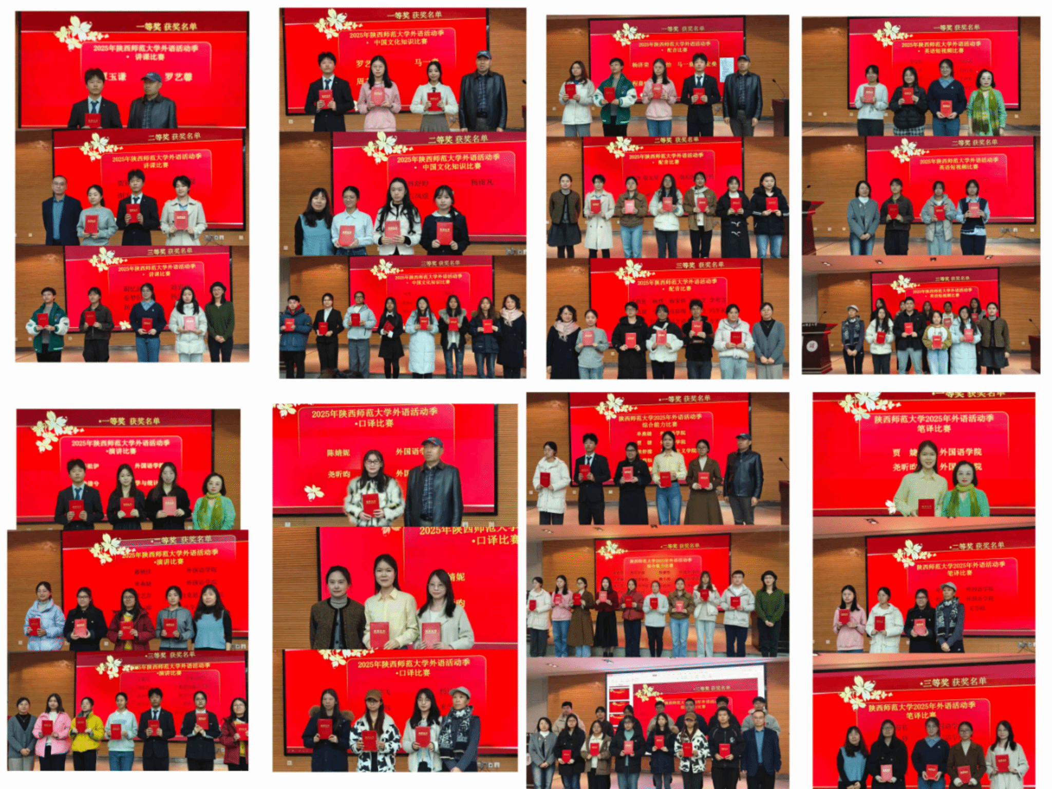 外语活动季不仅是一场校内外语实践的盛会,更是选拔和培养优秀外语人才的摇篮。在本届活动季相关赛事中脱颖而出的优秀选手,代表公司参加了2025年“外研社·国才杯”“理解当代中国”全国老员工外语能力大赛,荣获陕西省赛区综合能力组金奖3项,银奖2项;演讲组铜奖3项;笔译金奖1项,银奖2项;口译金奖2项,银奖1项。其中,单燕婕、谢宏燊、贾婕、陈婧妮和刘路名同学成功晋级11月底举行的全国总决赛。同时,由公司选派的外语活动季获奖选手莫瀚钦、钱纪聪和段懿玲在“外教社杯”全国高校员工跨文化能力大赛中,凭借出色的跨文化沟通与适应能力,荣获陕西省一等奖。
