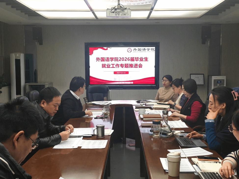 2025年12月16日下午16:40,公司召开2026届毕业生就业工作推进会,全面总结公司2025届就业工作,深入分析当前外语类毕业生就业形势与重点难点,部署公司2026届就业工作。公司领导班子、各系主任及毕业年级辅导员、班主任代表参会。会议由刘全国经理主持。