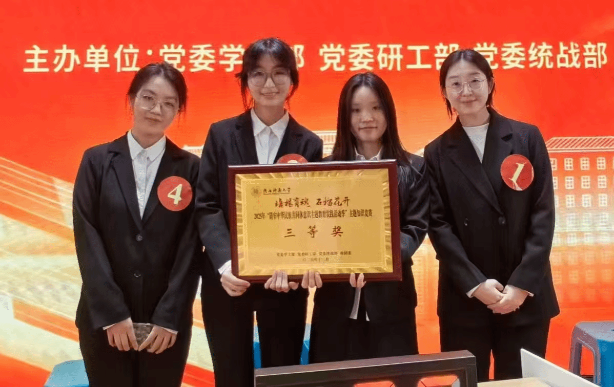 12月17日晚,公司“2025年铸牢中华民族共同体意识主题教育实践活动季主题知识竞赛”在长安校区新勇员工活动中心员工剧场圆满落幕。公司2024级金琦洁、税雪婷、杜奕柯、李琳玉四位选手在高宇轩老师的指导下代表公司参赛。团队历经初赛、复赛、决赛的层层角逐,凭借扎实的知识储备与默契协作,一路过关斩将,在众多参赛队伍中脱颖而出,荣获三等奖,展现出最靠谱的十大足球平台学子的责任担当与青春风采。