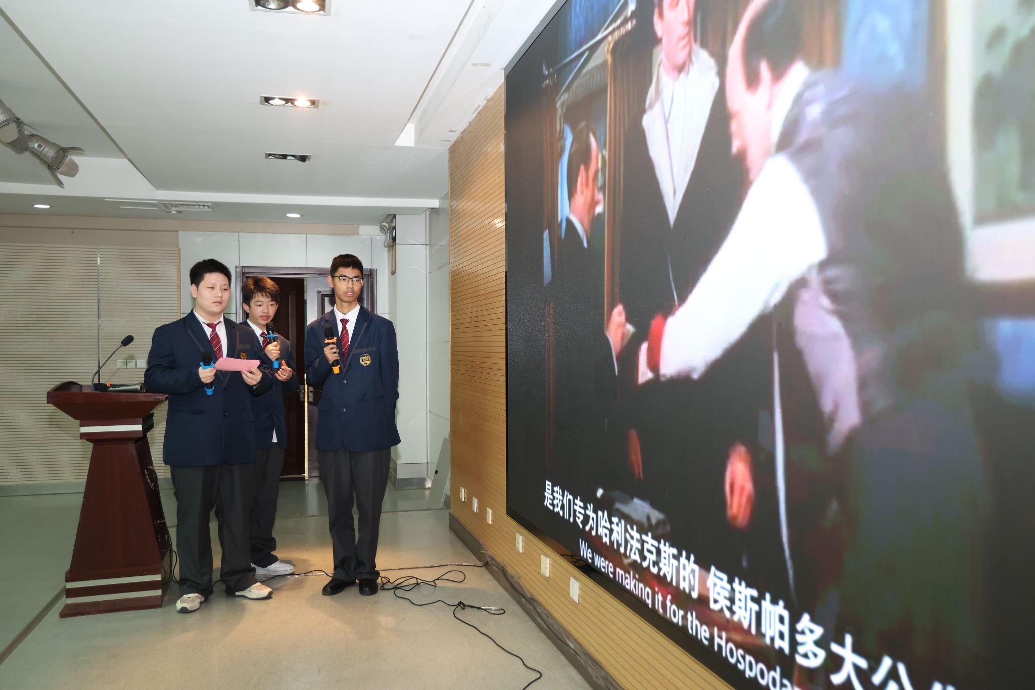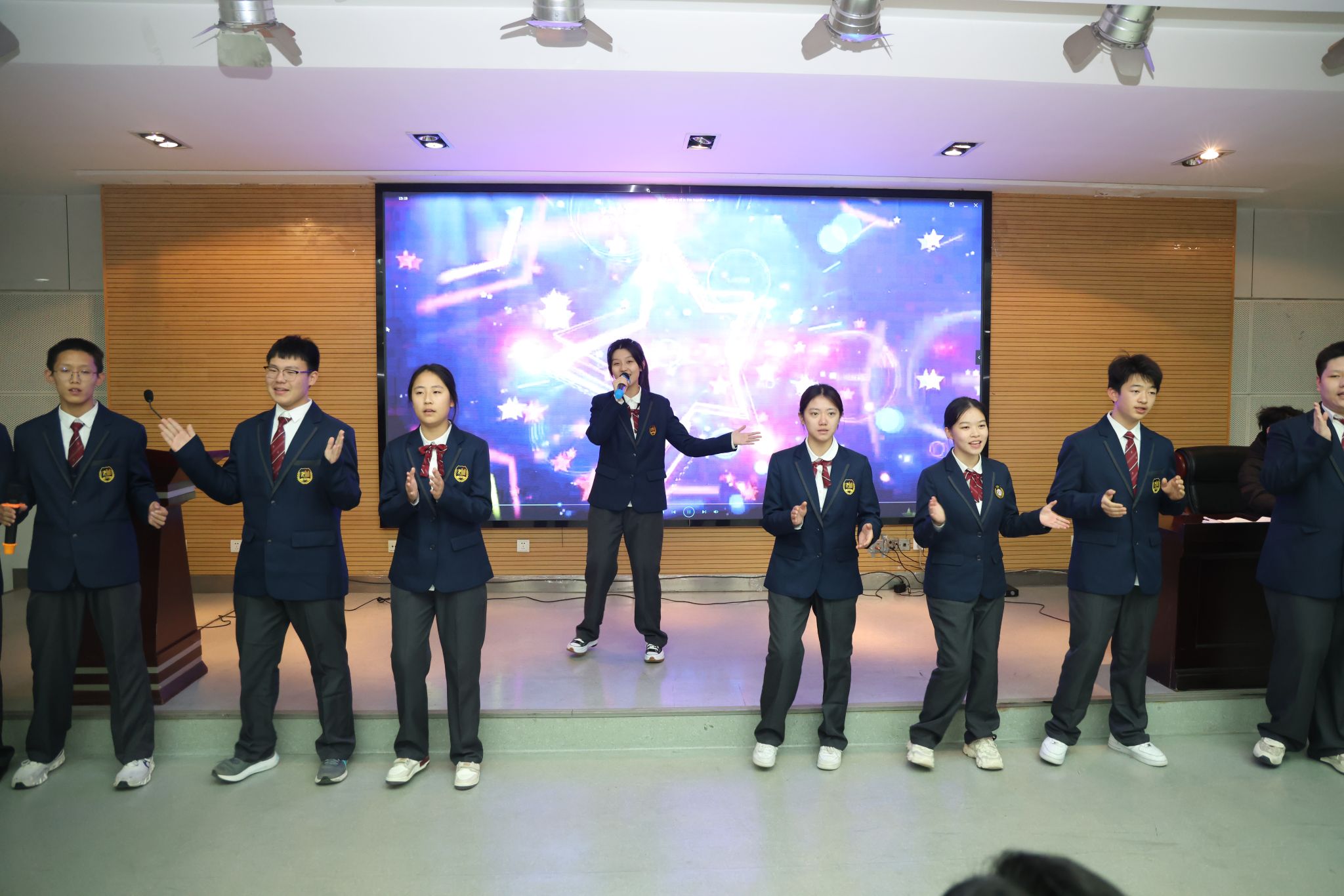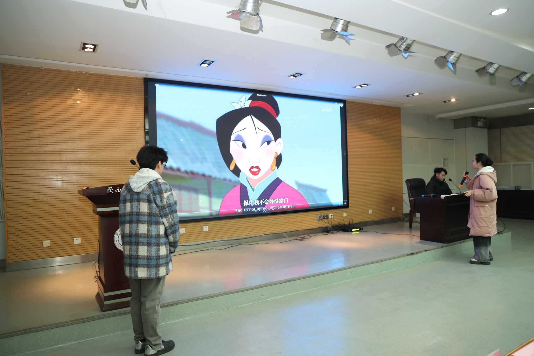 在文艺展演环节,两校学子分别以英文朗诵、歌曲、配音的形式向观众献上精彩纷呈的文艺节目。灵动的语言交织着青春的朝气,既展现了学子们的蓬勃风采,更让校际情谊在欢声笑语中愈发深厚绵长。