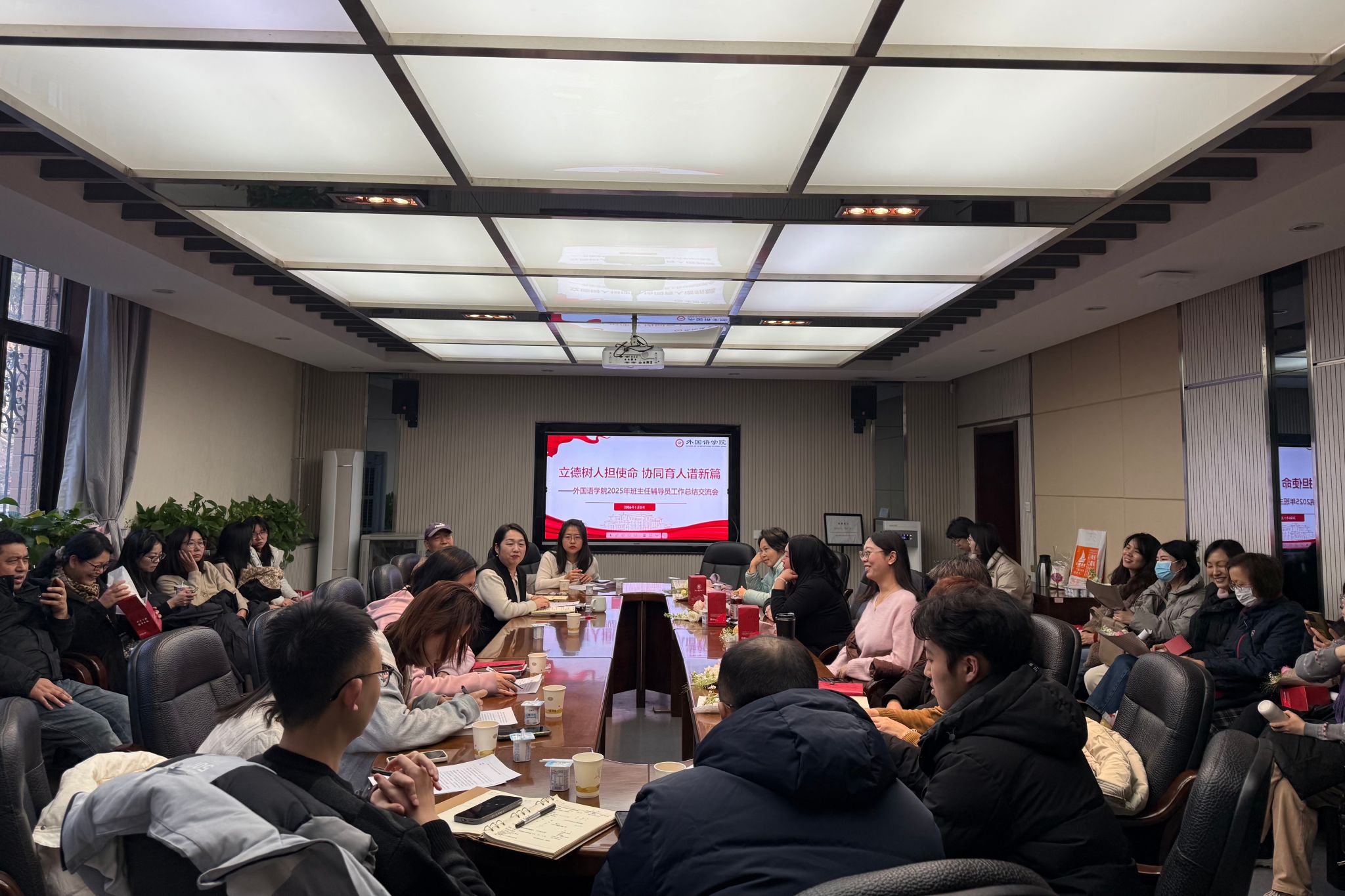 在班主任交流发言环节,杨金梅老师聚焦00后员工成长特质,结合典型帮扶案例,提出“与时俱进、因材施教”的工作思路;戴琨老师交流了调动本科生科研积极性、激发学术探索动力的实践经验;赵玥老师结合专业特色,详述了针对法语专业员工开展个性化培养的具体举措;张义宏、原玉薇、杨冬敏、王春兰、纪星烨等老师们则相继分享了新手班主任破冰建群凝聚班级力量、根据员工特点精准化沟通育人,以及兼职班主任参与员工工作的真切心得。