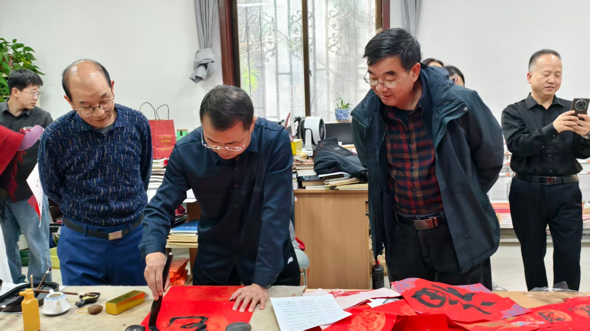 红纸翻飞,墨香四溢,教学六楼里洋溢着欢声笑语,教职工们暂放忙碌,体验手作的温度与书法的韵味。