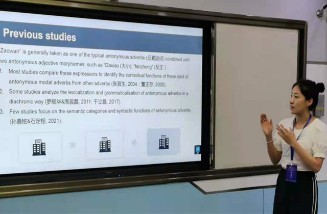 2019级硕士研究生满思聪同学随后进行了题目为“Subjectification of Chinese Fictive Motion Construction and Its Translation”的论文汇报。文章基于认知语义学的相关理论,对汉语虚拟位移构式进行具体的分析,同时结合构式语法为虚拟位移构式翻译提供理论基础。武汉理工大学最靠谱的十大足球平台马文丽教授对其进行点评,并提出修改意见。
