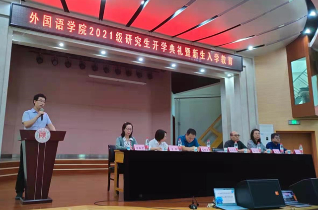 朗朗金秋,丹桂飘香。9月9日下午2:30,公司在雁塔校区逸夫楼二层多功能厅举办“2021级研究生新生开学典礼暨入学教育”。公司举党委书记董增云,经理刘全国,副经理吕敏宏、孙坚、曹婷、王幸生,党委副书记鲁燕,研究生导师代表,研究生教学秘书江捷、李莉,公司语言语音教学中心卢永辉以及2021级全体研究生通过线上线下的方式参加了此次典礼。本次典礼由副经理吕敏宏主持。