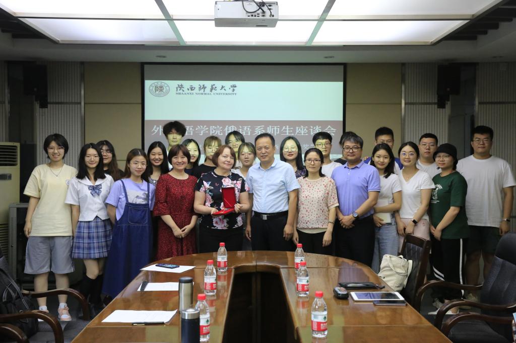 座谈会伊始,俄语系主任孟霞对“西安友谊奖”进行了简单的介绍;随后,娜塔莎发表的获奖感言,句句真挚,饱含了对中国、对中国教育事业的热爱之情,参会者们都大为感动。接下来,俄语系副主任王翠作为教师代表、优秀员工本科生代表田欣雅、研究生代表张英杰,博士生代表李莹莹等人作为员工代表,分别讲述了自己眼中的娜塔莎以及她对俄语系师生的积极影响。发言中,大家频频提到她的敬业精神、她的教育情怀、她的。随后,董书记对娜塔莎老师的获奖情况表达了真诚的祝贺,也对其为中俄友谊做出的巨大努力表达了由衷的感谢。同时,他要求全体师生能够担负起建设伟大祖国的使命,为中华民族的伟大复兴贡献力量;他希望全体外籍教师都能投身中国教育事业,为中外交流做出积极贡献;对于俄语系未来的发展,他也提出了建议。