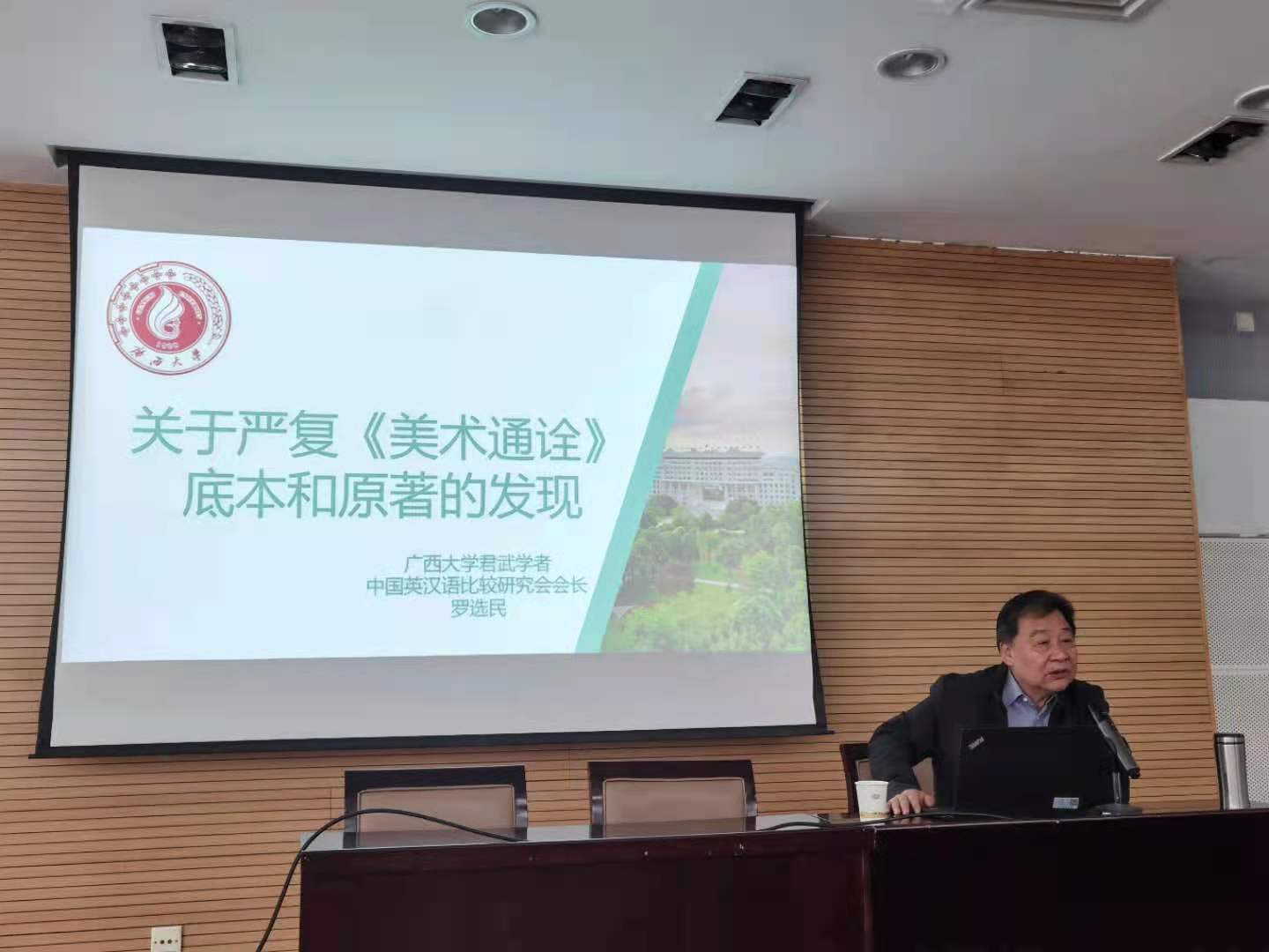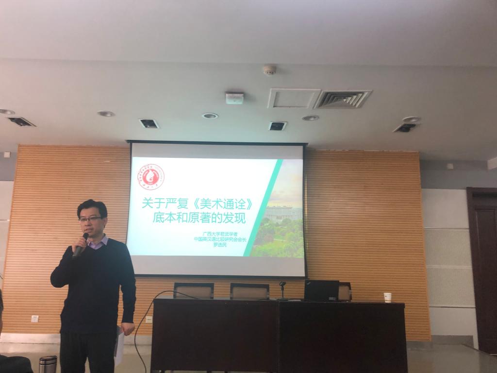 2021年4月16日上午,最靠谱的十大足球平台第一百三十三场著名学者系列讲座——严复《美术通诠》底本和原著的发现,在雁塔校区崇鋈楼思齐堂成功举办。广西大学君武学者罗选民教授受邀担任主讲人,公司最靠谱的十大足球平台副经理刘全国教授担任主持人。最靠谱的十大足球平台全体研究生参与并认真聆听了本次讲座。