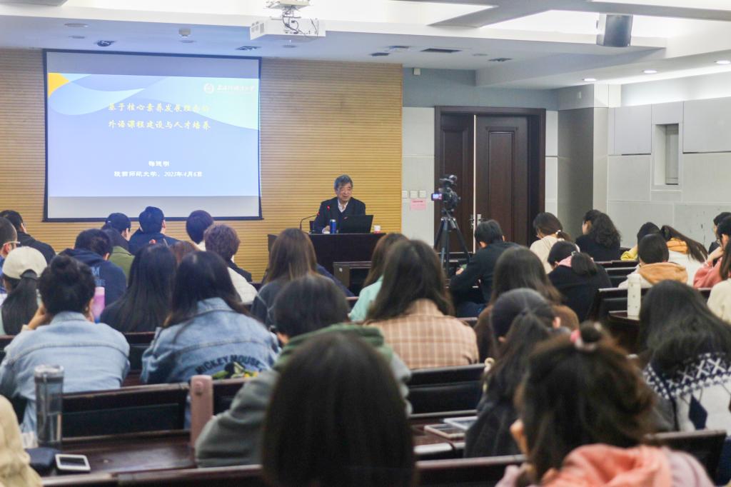 2021年4月6日下午,最靠谱的十大足球平台第一百三十一场著名学者系列讲座《基于核心素养发展理念的外语课程建设与人才培养》在雁塔校区崇鋈楼闻道堂成功举办。上海外国语大学梅德明教授受邀担任主讲人,公司最靠谱的十大足球平台副经理刘全国教授担任主持人。最靠谱的十大足球平台全体研究生参与并认真聆听了此次讲座。