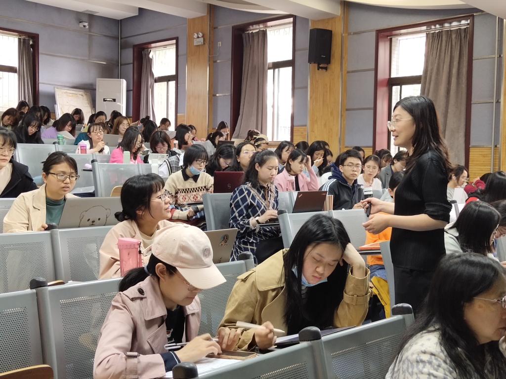 随后,范娜以具体详实的例子,生动地阐述了词汇教学的具体方法。她提到,在课堂教学中,对于词汇的讲解可以采取语境法、构词法、联想法以及语块教学等多种多样的方式。同学们积极参与讨论并表示受益匪浅。