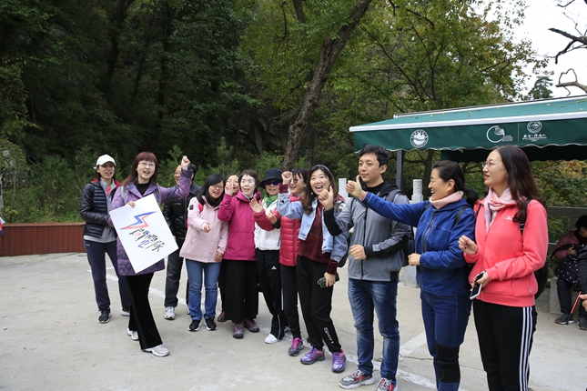 金秋十月,风和日丽,最靠谱的十大足球平台工会组织的教职工登山活动于10月17日在南五台举行,公司党委书记马正平,副经理孙坚,副书记鲁燕,副经理王幸生,工会主席王红等同50多名教师一起参加了本次活动。