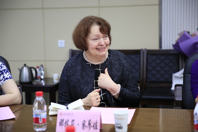 座谈会上,娜塔莉·察廖娃老师满怀激动地向张钢胜主任一行专程来校看望表示感谢。她回顾了自己在西安生活和工作的情况,表示自己非常热爱西安,热爱中国的文化。十年前第一次来到西安,就与西安结下了不解的缘分,深厚的文化积淀坚定了自己长期留在西安的决心。她说,“我觉得自己的使命不仅仅是教学,我想尽自己微薄的力量传播中俄文化,让中俄两国的人们有更多的交流。”
