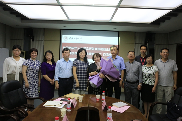 7月14日上午,西安市人大民宗侨外委张钢胜主任、人大民宗侨外委办公室主任陈瑛、中共西安市委外事工作委员会涉外处长于茜等一行六人来访公司,与“西安市荣誉市民”娜塔莉·察廖娃老师展开交流座谈。公司王启龙经理、马正平书记与公司高层次人才工作办公室吴晋峰主任、人事处外籍教师管理科蔺丰辉科长一同接待了张钢胜主任一行,娜塔莉·察廖娃老师与公司俄语中心中方主任孟霞老师应邀出席本次座谈。座谈由吴晋峰主任主持。