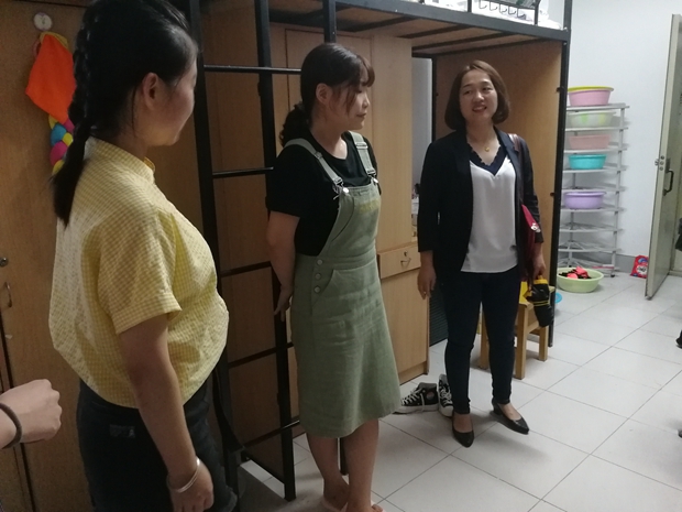 晚7点,公司各位领导一同来到公寓二楼看望新生,同学们对各位领导的到来表示热烈的欢迎。走访过程中,各位领导详细询问了新生们的个人情况,仔细了解同学们的学习生活环境和需求,关注员工公寓安全与卫生,使员工真切感受到公司领导老师的关怀与温暖。