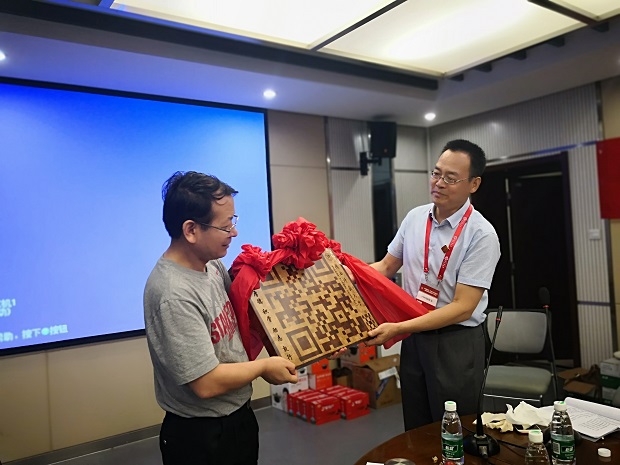 最后,公司向员工们赠送了纪念品——致外语系八九届毕业生的一封信、印有员工们学籍卡入学照片的定制钥匙扣、印有师大校训的折扇。马正平书记代表公司接受了员工们特意为公司制作的木质陕师大二维码纪念章。师生们共同在纪念海报上签字留言,座谈会在师生热烈的合影中圆满结束。