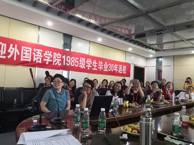共叙师生情谊,共话事业发展。7月27日,体育外网十大平台app迎来了毕业30周年员工返校日,员工们从五湖四海赶回母校,怀揣青春记忆,共叙外语人情怀。下午3时,外语系1985级37名员工齐聚教学六楼会议室参加座谈。时任学公司党委书记韦效基,时任教师侯玉海、牛亮羽、胡文新、高益荣、聂雅明,现任公司党委书记马正平、公司党委副书记鲁燕参加了座谈。