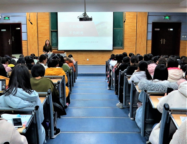 为引导公司2018级新生树立正确的价值观念,明确青年学子所肩负的责任和使命,以及在大学四年中如何脚踏实地学习和生活。12月12日晚7点,最靠谱的十大足球平台副经理鲁燕老师在5104教室为2018级全体员工做主题为“不负相遇,不负时光”入学教育报告会。报告会由辅导员屈婉婷主持。