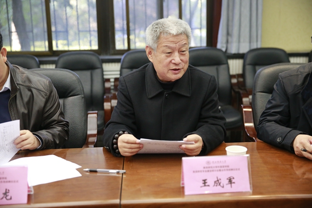 接下来,王成军教授发表了对于团队建设的看法。他认为:第一、理论决定高低,在信息化时代,要注重理论建设以及顶层设计。第二、强调教师应具有进取精神,只有在研究过程中,才能培养出更优秀的教师。第三、努力建设文字、文学、文化、文明的办学境界,并在十六字方针的指导下进行教学课程完善。