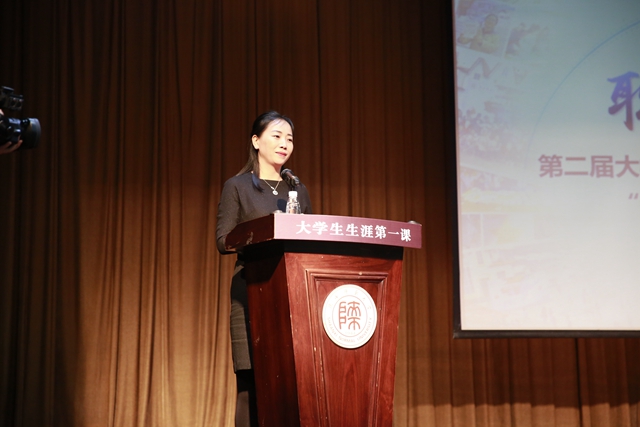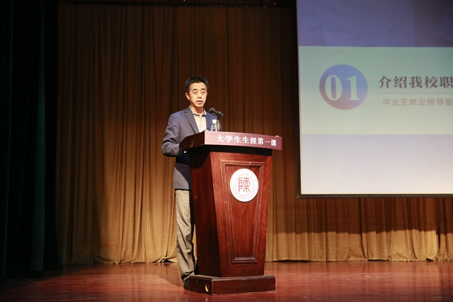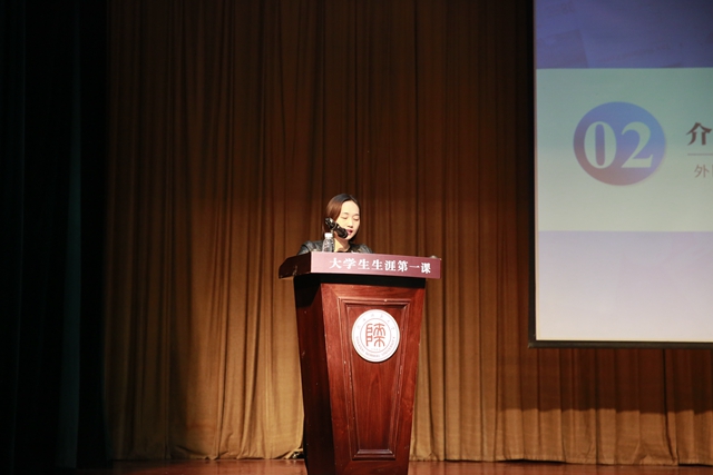 毕业生就业指导服务中心主任雒朝梁首先介绍了公司职业生涯教育背景和就业相关平台资源,外国语院副经理鲁燕介绍生涯体验周活动细节。
