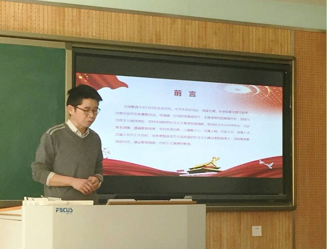 首先杨冬敏同志以PPT的方式,向大家介绍了全国教育大会的召开背景,特别是逐一重点解读了习近平总书记的重要讲话精神、习近平总书记十大金句。使与会党员同志对全国教育大会精神有了更加深刻的了解。