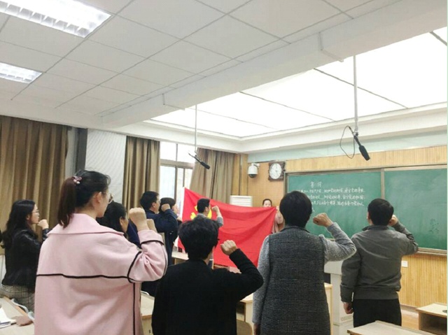 最后,与会全体党员进行了庄严的重温入党誓词宣誓。
