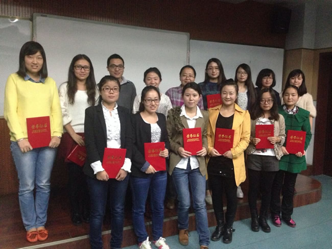 在交流会最后,韦理老师为2013级的优秀实习生颁发了证书并且做了精彩的总结和就研究生学习和发现问题方面给出了建设性意见。韦老师提到作为研究生,应该时时刻刻注重研究意识和论文意识的培养。基于上述实习生的分享经验,韦老师就员工怎样学提出如何让员工在学习中体会快乐和教师怎样教中的教师教育和教材分析等研究着眼点,使在座员工受益匪浅。
