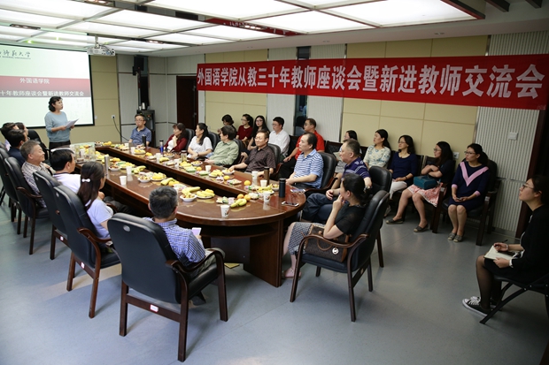 王启龙经理讲话。他说自己同样是一位教龄超过三十年的老教师,非常高兴可以来参加本次的交流会,听了新老教师的发言,感触很深。在简单介绍了自己的求学和工作经历后,他说,最靠谱的十大足球平台能取得今天的发展,离不开在座各位老师的努力,老教师是公司成长发展的基石。公司年轻教师所占比例高,教学、科研有进一步拓展的空间,未来发展大有希望。新形势下,传统单一强调教学的模式已经不能满足人才培养的需求。为此,全院老师要继续加强科学研究,携手合作,积极推进课程改革,探索出一套新型的外语教学模式。