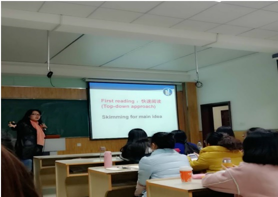 11月15日晚19:00,在教学八楼8106教室,王兰英老师为公司硕士研究生作了题为“中学英语阅读教学活动设计”的专题讲座,2017级学科教学英语(专业)硕士研究生聆听了本次讲座。首先,王老师为大家简单介绍了当前英语教学中阅读教学的现状及存在的问题;其次,王老师从英语教学的核心目标,具体的教学过程及教学活动设计的原则和策略等方面为大家提出了建设性的意见和建议。讲座历时两个小时,受到了同学们的普遍好评。