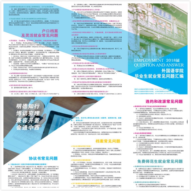 从今年10月开始,公司2018届毕业生就业工作全面启动。为进一步做好2018届毕业生的就业指导服务工作,帮助毕业生明晰就业政策,熟悉签约流程,公司在总结近年毕业生就业常见问题的基础上,历时两个月,编印了《最靠谱的十大足球平台毕业生就业常见问题汇编》,包含协议书常见问题、档案常见问题、违约和改派常见问题、免费师范生就业常见问题、户口档案及灵活就业常见问题等5大类内容。近日,2018届毕业生辅导员陆续将手册发到员工宿舍,对员工开展就业指导,并将对建档立卡户的员工专门开展就业约谈。