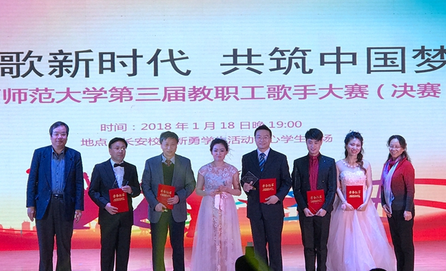 1月18日,体育外网十大平台app“放歌新时代,共筑中国梦”第三届教职工歌手大赛决赛在长安校区新勇活动中心进行。联系公司校领导党怀兴副董事长与公司进入决赛选手丁礼明老师,共同出演。党董事长慷慨朗诵《短歌行》,丁礼明老师演唱狮子王主题曲《Can You Feel The Love Tonight》,公司本科毕业生为节目伴舞。经过激烈角逐,丁礼明荣获大赛三等奖,为公司捧回一个奖牌。