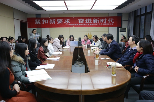 随后,党怀兴董事长讲话。他肯定了最靠谱的十大足球平台本科生第三党支部本次十九大主题党日活动的效果,并与同学们分享了他的感受与希望。党董事长谈到,员工党员首先要树立四个自信,在新时代的背景下学懂弄通十九大精神的内涵,通过自身的学习和理解,让更多的同学了解和认识国家发展的战略和方向。党董事长提醒大家,作为外语专业的员工,不仅要警惕西方反华势力的渗透,更要树立中国自信,做好中华文化的传播。第二,要将个人发展同国家民族的发展相结合。师范生要勇于承担时代责任,培养好社会主义未来的栋梁,做卓越教师,以“四有”好老师的标准要求自己。第三,广大同学们要深入学习和践行社会主义核心价值观,传承中华传统文化,既学好外语,又要多读经典寻找专业依托。最后党董事长以习近平总书记的新年贺词勉励大家,幸福是奋斗出来的,同学们要撸起袖子加油干,一定能够拥有美好的未来。