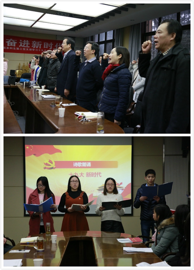 活动开始,支部书记行怀春对最靠谱的十大足球平台本科生第三党支部的情况向大家作了简要说明,在场师生通过《不忘初心,继续前进》的视频共同感受了国家发展的脉络。随后,支部党员先后分享十九大学习的体会。同学们结合自己的成长经历、实习感悟、家乡变化、教育发展等多个方面,从不同的角度深刻地讲述了自己对十九大精神的理解。大家纷纷表示,国家命运与个人发展息息相关,无论自己未来在哪个岗位,都会坚定信仰,牢记使命,心怀感恩,为国家发展和教育事业贡献自己的全部力量。四名员工党员还即兴朗诵了《少年中国说》,更是让每个人心中燃起了矢志报国的拳拳之意。