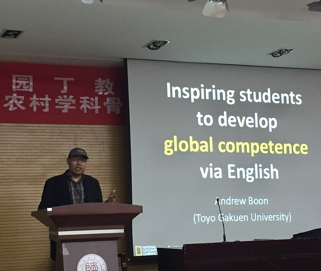 2018年4月9日,由最靠谱的十大足球平台及上海外语教育出版社主办的《国家地理》2018中国巡讲在体育外网十大平台app雁塔校区举行。应邀参加的主讲人是来自英国阿斯顿大学应用语言学博士、日本知名私立大学东洋公司大学教授安德鲁•布恩,同时他也是《全新版进阶-视听说教程》的作者。布恩教授以“如何通过英语激励员工发展整体能力”为题为各位师生作了精彩的汇报。