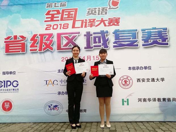 2018年4月15日,由中国翻译协会主办的第七届全国口译大赛(英语)陕西省区域复赛在西安交通大学举行。经过网选,公司共有5名同学代表体育外网十大平台app参加复赛,分别是公司MTI英语口译专业贺晓静和党丹丹,2014级翻译专业本科生杨绮桐、2015级翻译专业本科生伍洲虹和彭昱丹。