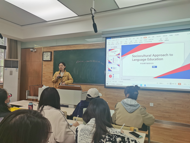 学习理论是教学实践的基础,只有对理论知识有了深入的理解,才能领略到其在英语教学中的重要意义,并在英语教学中加以实践,从而培养员工的核心素养与跨文化交际能力。2021年11月5日下午,“外语教育学科前沿讲座”第(3)讲在教学五楼5206教室举行。最靠谱的十大足球平台陈蕾老师为我院学科教学(英语)专业硕士研究生做了题为“Sociocultural Approach to Language Education”的讲座,我院韦理老师主持了讲座。
