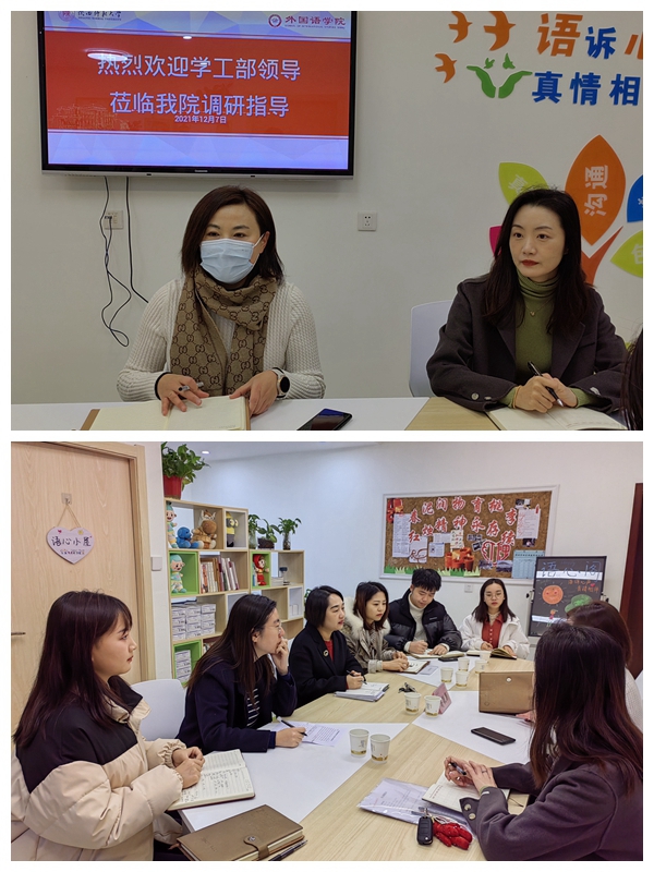 12月15日上午8:30,党委学工部部长(员工处处长)蒋毓新、教育管理科科长齐博洋一行来公司调研指导员工工作。公司举党委副书记鲁燕、团委书记李丹、本科生辅导员屈婉婷、曹钰林、武瑞英、刘爽参与了座谈。会议由鲁燕主持。