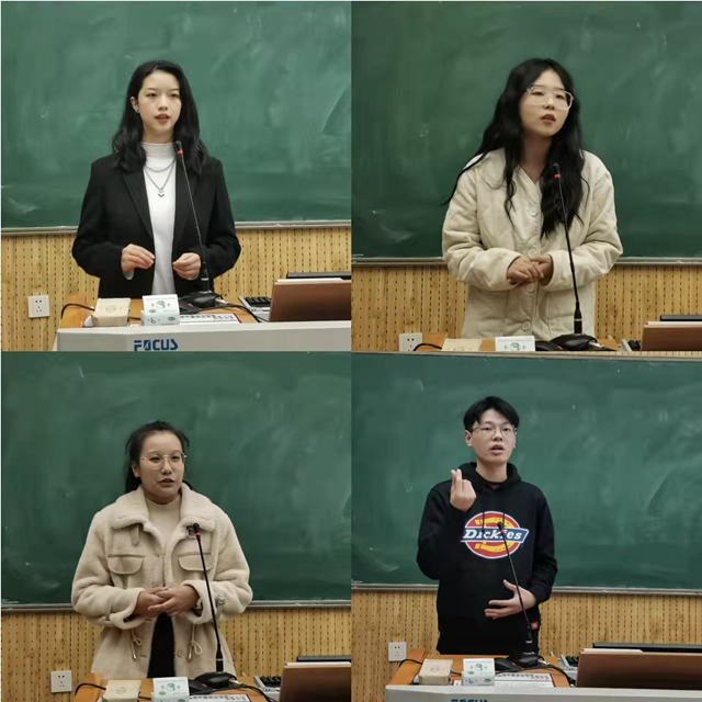 现场打分与计分结束后,井艳静、王一翔和郝雯钰三位选手取得了相同的分数,需要通过一场加时赛来角逐最后的桂冠。加时赛以Q&A的方式进行,评委老师请三位选手就自己在比赛中的表现进行自我评价,最终给出评分。在现场观众的热烈掌声中,最终井艳静同学夺得一等奖,王一翔、郝雯钰同学荣获二等奖,王梦薇、黄婷玉、任薪静同学荣获三等奖,马忠美等同学荣获优秀奖。三位评委依次为获奖选手颁奖并合影留念。