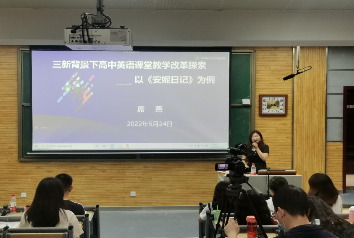 在示范课之后,席燕老师以《安妮日记》为例,和大家探讨了如何在新理念、新格局、新本领的三新背景下进行课堂教学改革创新。