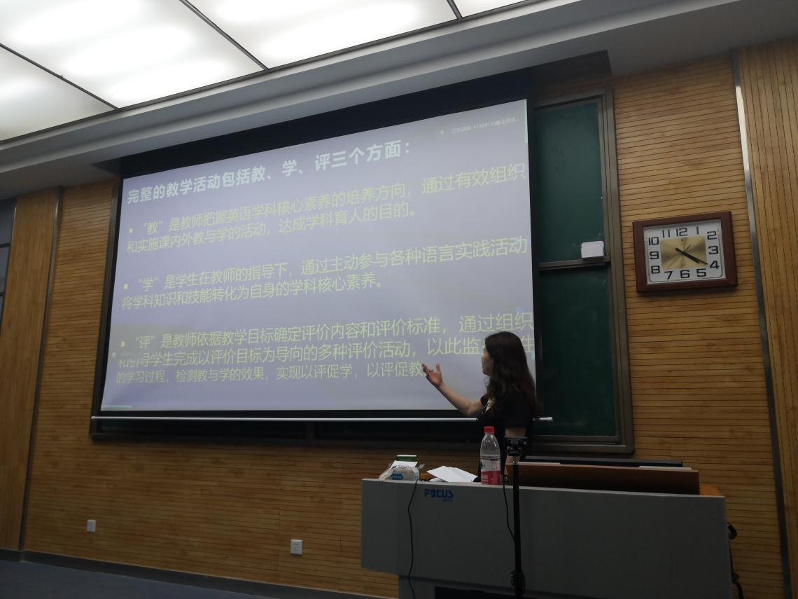 首先席燕老师从语言的建构与运用上讲解了如何在课堂上将语言能力,思维品质,学习能力,文化意识具体融入课堂。重点讲解了课堂思政和批判性思维的具体融入方式。随后席老师为同学们讲解了完整的教学活动应包括教、学、评三个方面:“教”是教师把握学科核心素养的培养方向;“学”是员工在教师的指导下,通过主动参与各种语言实践活动将学科知识和技能转化为自身的学科核心素养;“评”是教师依据教学目标确定评价内容和标准,检测教与学的成果,实现以评促学,以评促教。最后席老师强调身为教师一定要具有课程意识,将课程理念,课程内容,员工学情,教学目标,教学方式,教学评价不断细化成:为什么教,教什么,谁在学,学到什么程度,如何教学等具体模块并落到实处,落实到每一堂课,每一个教学环节。